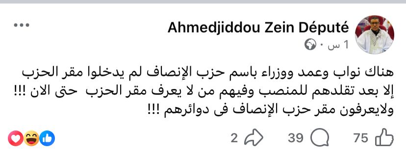 التقى الرئيس محمد ولد الغزواني اليوم الثلاثاء رئيس حزب العدالة (تحت التأسيس) أحمد عبد الله صمب، الذي أشاد بإيجابية اللقاء واهتمام الرئيس بالنقاط المطروحة.