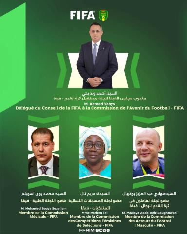 أعلن الاتحاد الدولي لكرة القدم عن تعيينات جديدة شملت أربعة ممثلين عن موريتانيا في لجانه الفنية، من بينهم رئيس الاتحادية أحمد ولد يحي الذي اختير مندوباً لمجلس الفيفا في لجنة مستقبل كرة القدم.