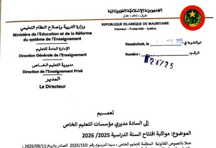 ألزم تعميم صادر عن وزارة التربية وإصلاح النظام التعليمي، مؤسسات التعليم الخاص باعتماد البرامج والمناهج الدراسية، وبالتقيد بتقاليد المدرسة الجمهورية.