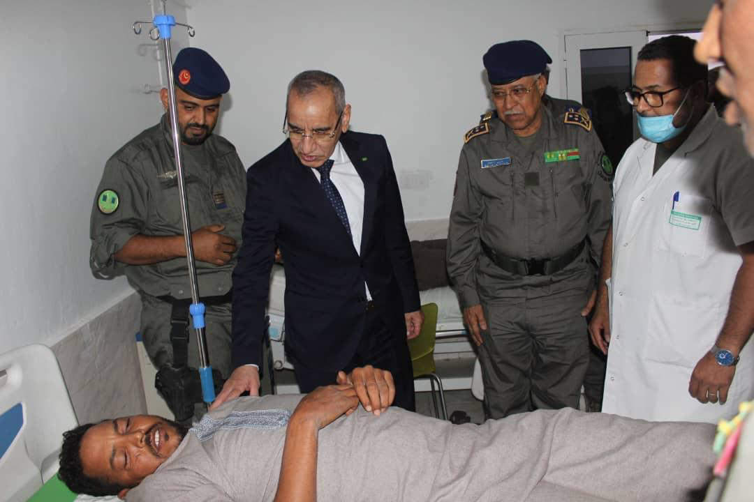 زار وزير الداخلية محمد أحمد ولد محمد الأمين، رفقة قائد أركان الحرس الوطني الفريق إبراهيم فال ولد الشيباني، مساء اليوم الاثنين، المستشفى العسكري للاطمئنان على حالة عناصر الحرس الوطني بعد حادث سير ليلة البارحة.