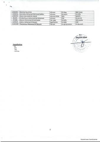 خادجتو حسينو گي – ممرضة دولة من: الإدارة الجهوية للصحة بالحوض الشرقي إلى: الإدارة الجهوية للصحة بنواكشوط الجنوبية