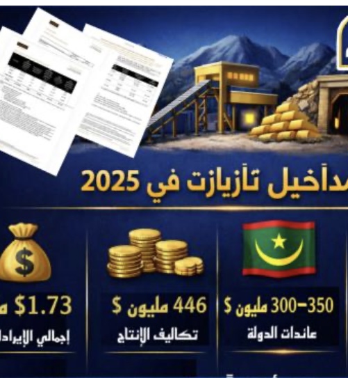 أظهرت نتائج شركة كينروس غولد الكندية لسنة 2025 أن منجم تازيازت في موريتانيا واصل تحقيق أداء مالي قوي، مدعوماً بارتفاع أسعار الذهب، ما انعكس على الإيرادات والأرباح، وعلى العائدات التي تستفيد منها الخزينة الموريتانية.
