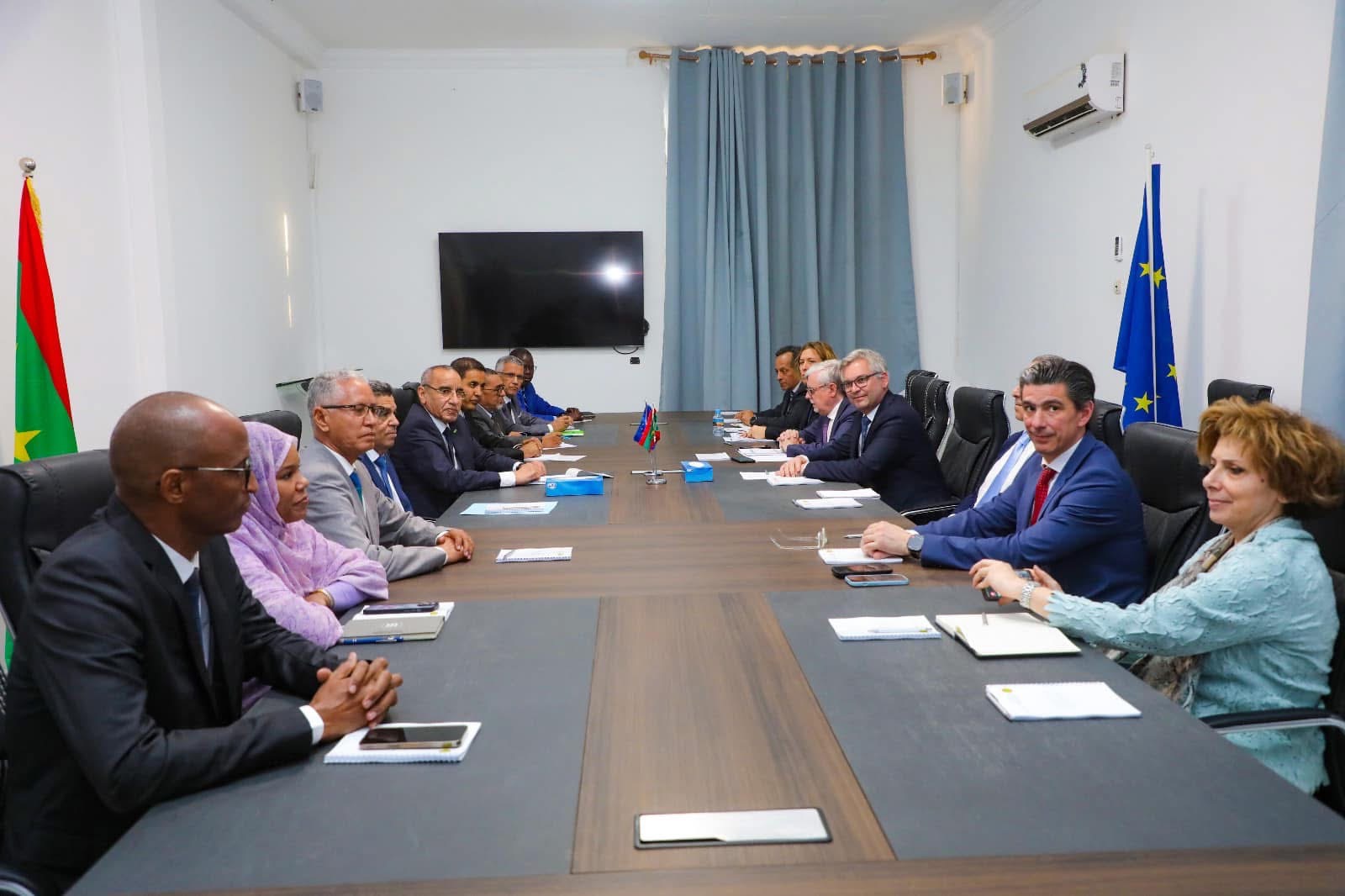 وحضر الاجتماع الأمين العام للوزارة، عبد الرحمن ولد الحسن، وسفير الاتحاد الأوروبي في موريتانيا، إلى جانب عدد من أطر الوزارة والوفد الأوروبي المرافق.