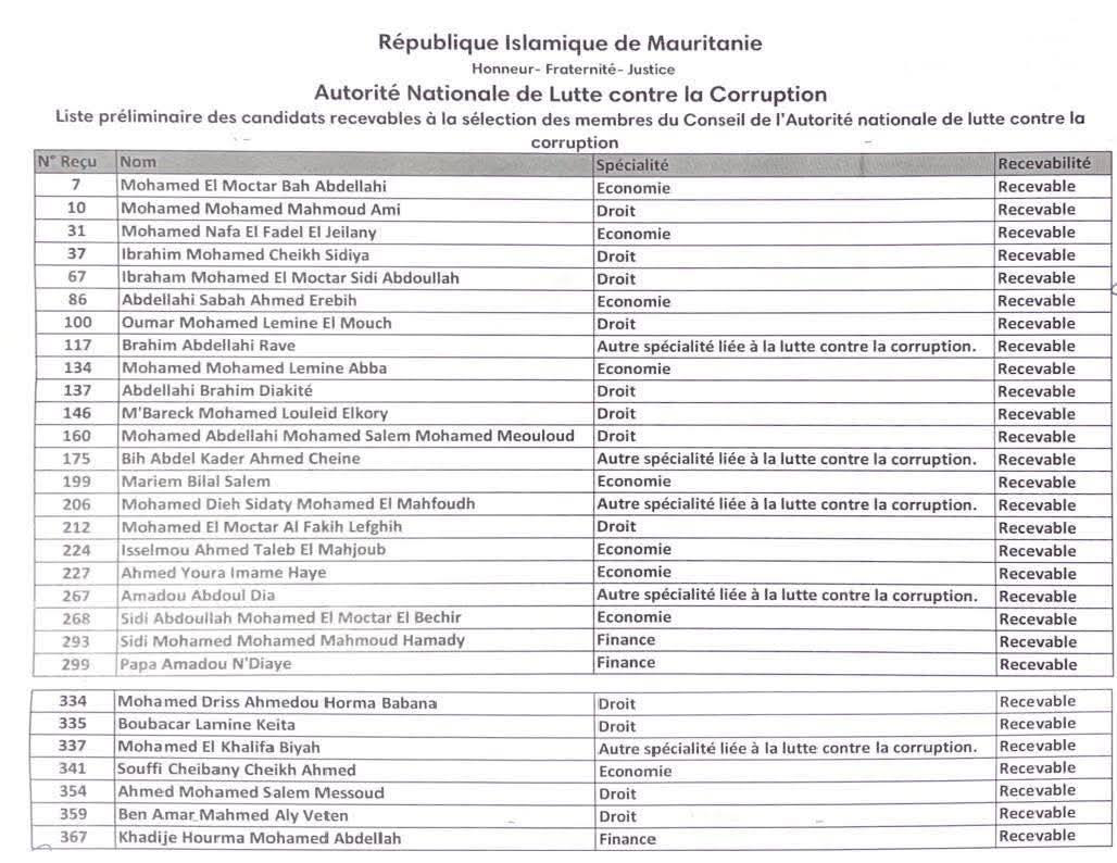 محمد المختار باه عبد الله، محمد محمد محمود آمي، محمد نافع الفاضل الجيلاني، إبراهيم محمد الشيخ سيديا، إبراهيم محمد المختار سيدي عبد الله، عبد الله صباح أحمد اربيه، عمر محمد الأمين الموش، رافي دي إبراهيم عبد الله، محمد محمد الأمين أبا، عبد الله إبراهيم دياكيتي، امبارك محمد لوليد الكوري، محمد عبد الله محمد سالم محمد مولود، بيه عبد القادر أحمد شين، مريم بلال سالم، محمد الديه سيداتي محمد المحفوظ، محمد المختار الفقيه لفقيه، إسلمو أحمد الطالب المحجوب، أحمد يورا إمام هاي، آمادو عبدول ديا، سيدي عبد الله محمد المختار البشير، سيدي محمد محمد محمود حمادي، بابا آمادو اندياي، محمد إدريس أحمدو حرمة ببانا، بوبكر لامين كيتا، محمد الخليفة بيه، صوفي شيباني الشيخ أحمد، أحمد محمد سالم مسعود، بن عمار محمد علي فيتن، خديجة حرمة محمد عبد الله.