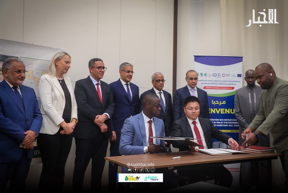أشرف وزير الطاقة والنفط محمد ولد خالد اليوم الثلاثاء في نواكشوط، على توقيع عقود تنفيذ أشغال بناء خط الربط الكهربائي عالي الجهد بين موريتانيا ومالي (PIEMM)، وهو مشروع يندرج ضمن برامج منظمة استثمار نهر السنغال.